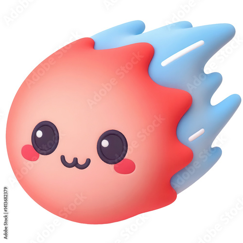 © JimzStd, Fototapeta premium Comet 3D Plush Toy – Cute Soft Cartoon Comet with Flame Trail and Kawaii Face – Minimal Pastel Plush for Space Lovers