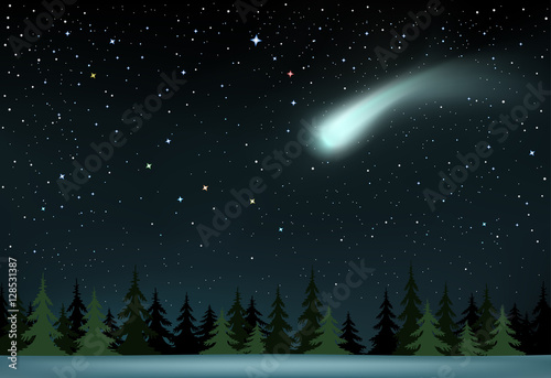© romvo, Fototapeta premium comet falls over the night wood