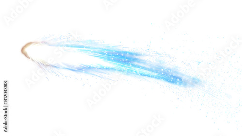 © Cahyani, Fototapeta premium Comet Tail Streak: Bright Blue Light Trails Across Black Background