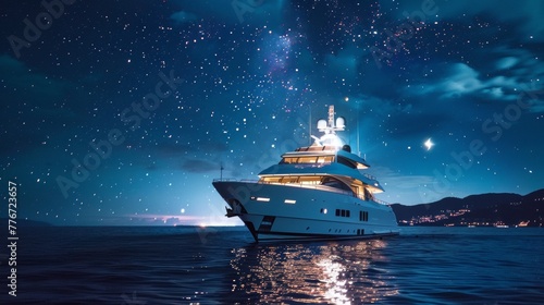 Fototapeta premium Comet viewing party aboard a luxury yacht