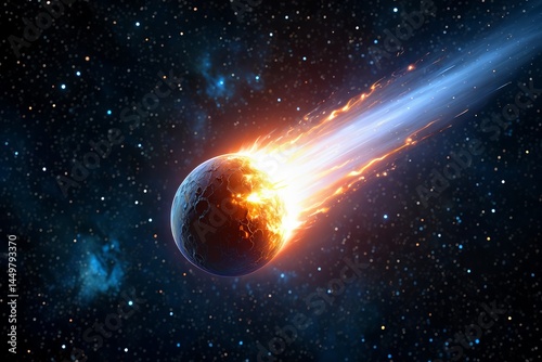 © homan, Fototapeta premium Comet with fiery and blue electric tail in starry space.