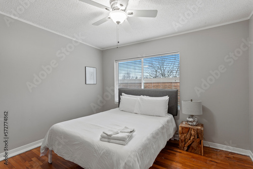 © samiam2007, Fototapeta premium Comfortable bed, dry reeds and chest of drawers near white wall