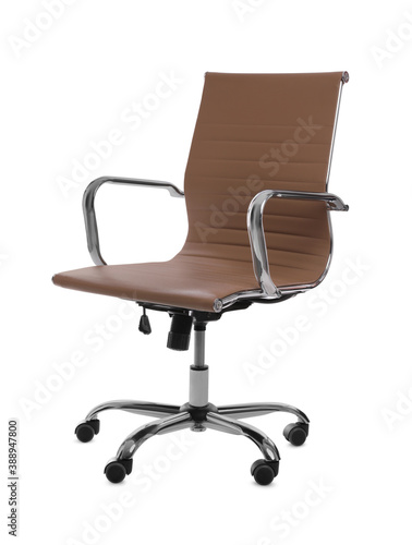 Fototapeta premium Comfortable leather office chair isolated on white