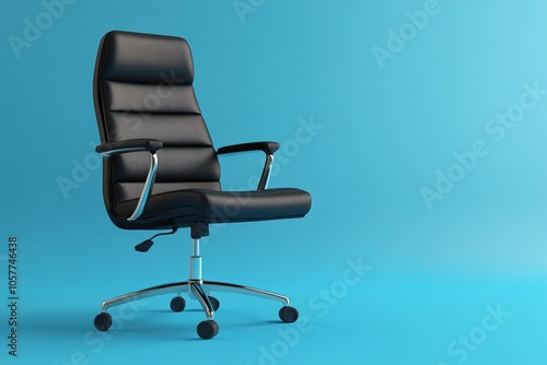 © MDMAHMUDULLAH, Fototapeta premium Comfortable office chair on light blue background, space for text