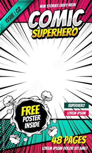 © anggi wibisono, Naklejka premium Comic book cover. Vector illustration style cartoon.