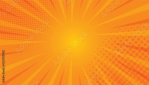 © BhandariProductions, Obraz premium Comic book pop art style vector background. orange comic sunburst effect with halftone. templates, sale banners, events, ads, web pages