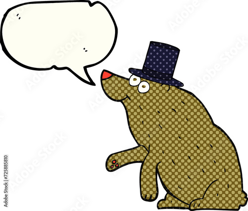 © lineartestpilot, Obraz premium comic book speech bubble cartoon bear in top hat