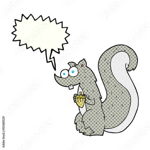 © lineartestpilot, Obraz premium comic book speech bubble cartoon squirrel with nut