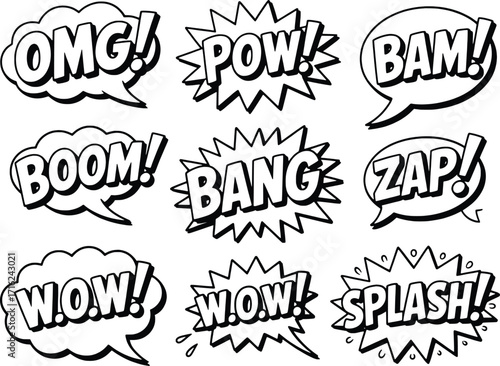 Fototapeta premium Comic book speech bubbles with action words in a retro style