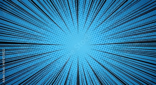 © AbdullahStudio, Obraz premium Comic book style zoom effect on blue background with halftone pattern
