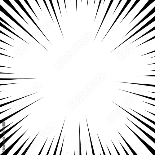 © Nuy, Obraz premium Comic book white and black radial lines background. Superhero action, explosion background, manga speed frame, vector illustration