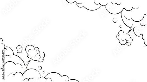 © Natalya, Naklejka premium Comic clouds frame. Cartoon puff cloud frame on transparent background. Boom, pow effect. Explosion with puffs of smoke.