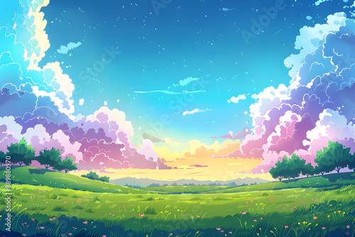 © ClaudiaMoya, Obraz premium Comic illustration landscape background