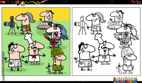 © Igor Zakowski, Fototapeta premium comic people of different professions group coloring page