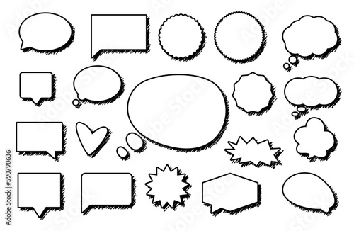 Fototapeta premium Comic Speech Bubble Set. Pen, pencil or marker handdrawn doodle scribble...