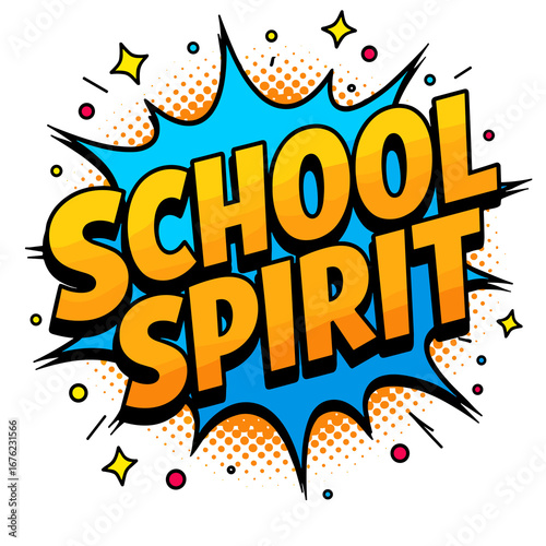© Natalia, Fototapeta premium Comic speech bubble with the text "School Spirit" in pop art style