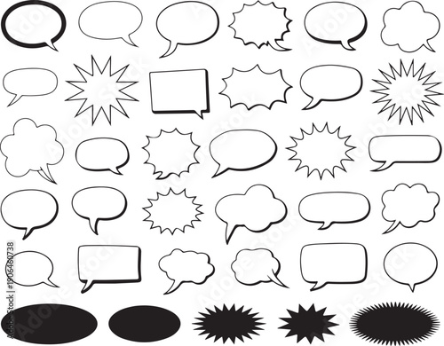 Fototapeta premium Comic Speech Bubbles and Dialog Clouds Outline Set with Empty Shapes