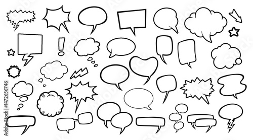Fototapeta premium Comic Speech Bubbles Collection set Pack in vector format. Perfect for comic book enthusiasts, writers, designers, and any creative person working on design-related projects.
