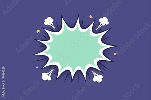 Obraz premium Comic style explosion with speech bubble and stars on purple background