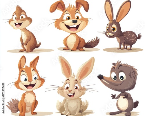 Fototapeta premium Comical Animal Collection: Adorable Wild Creatures in Quirky Cartoon Style