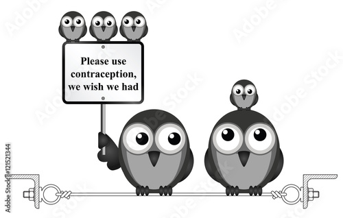 © Barry Barnes, Obraz premium Comical family of birds with use contraception message