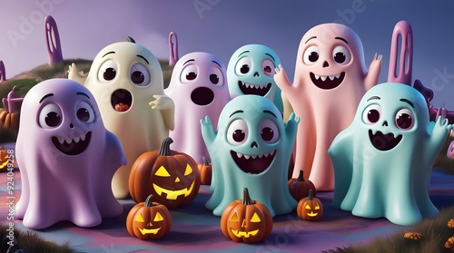 © sembiz sembiz, Obraz premium comical ghostly figures in 3d halloween scene