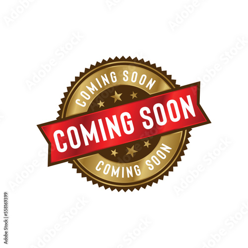 Obraz premium Coming Soon Seal Emblem Ribbon Vector Template