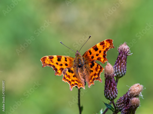 © Stephan Morris , Obraz premium Comma Butterfly on Creeping Thistle