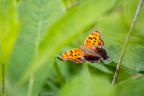 © Sandi, Obraz premium Comma Butterfly Resting in Foliage