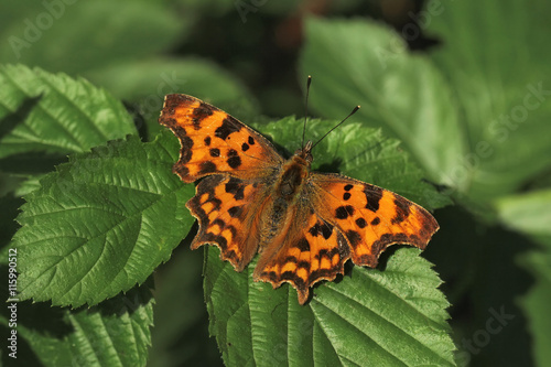 © butterfly-photos.org, Obraz premium Comma butterfly resting on a leafy bush.