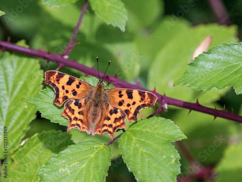 Obraz premium Comma Butterfly Resting, Wings Open