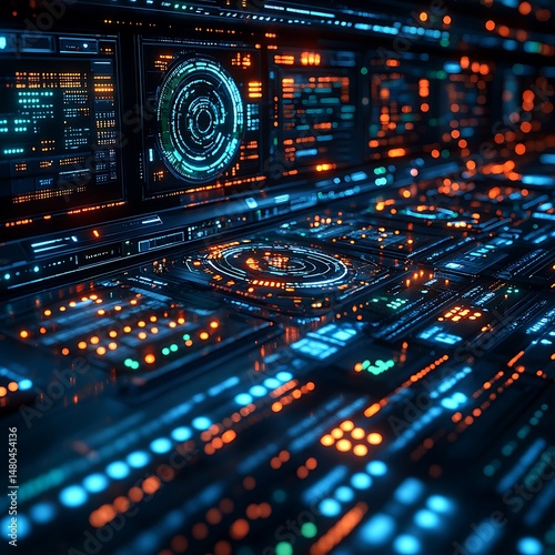 © Indronath, Obraz premium Command center futuristic interface board high resolution picture