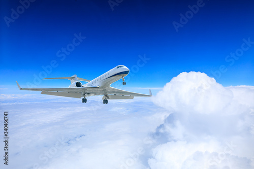 Obraz premium Commercial airplane flying above the clouds,travel concept.