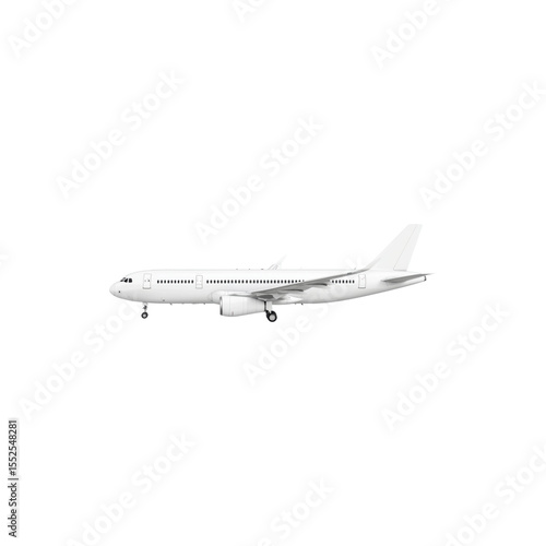 © muntazer, Fototapeta premium Commercial airplane in flight with extended wings and aerodynamic design isolated on white background
