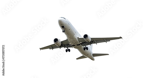© Halal Store, Obraz premium Commercial Airplane Preparing to Land Underneath a White Sky Full View