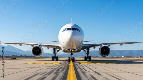 © Irtiko, Obraz premium Commercial airplane taxiing on runway, ready for takeoff
