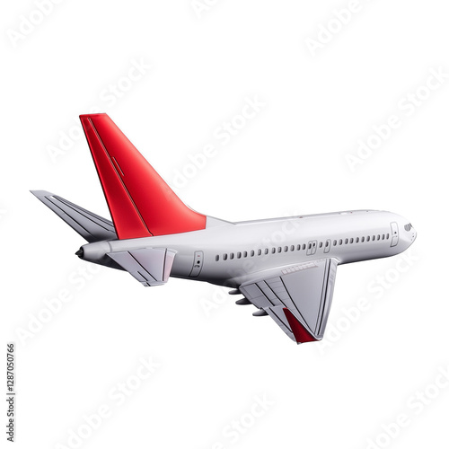 Fototapeta premium Commercial airplane with red tail on transparent background