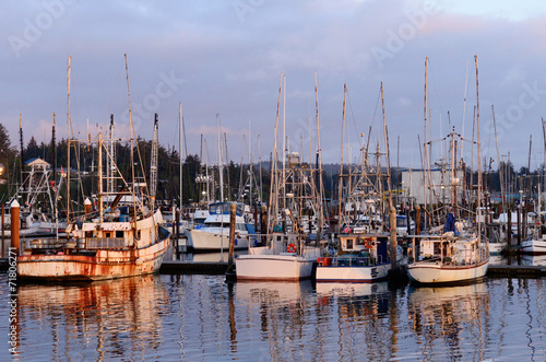 © ftfoxfoto, Fototapeta premium Commercial and private fishing boats at dock in Charleston OR