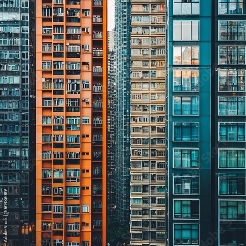 © Lalə, Fototapeta premium Commercial building windows in HK