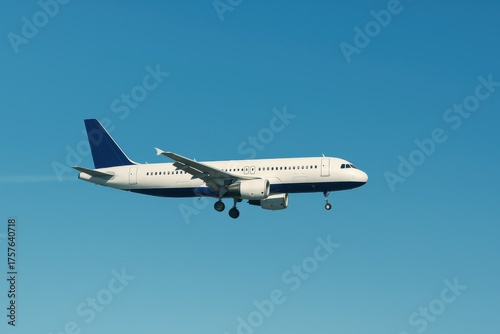 © Khaisan, Obraz premium Commercial Jet Airplane Flying Through Clear Blue Sky Ready for Landing