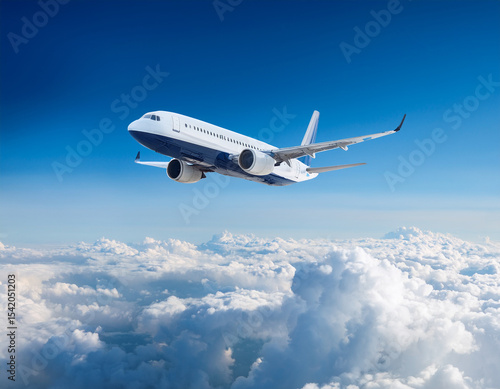 © TarikTalha, Obraz premium Commercial jet flying over clouds