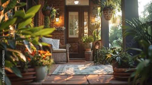 Obraz premium commercial photo, close-up, front porch decor, bottom view, soft light