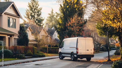 Obraz premium Commercial van delivers cargo to suburban custmers. Shipping parcels goods...
