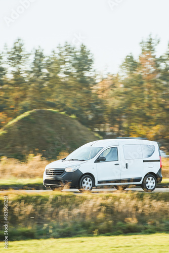 © AlexGo, Fototapeta premium Commercial van moving on rural paved road
