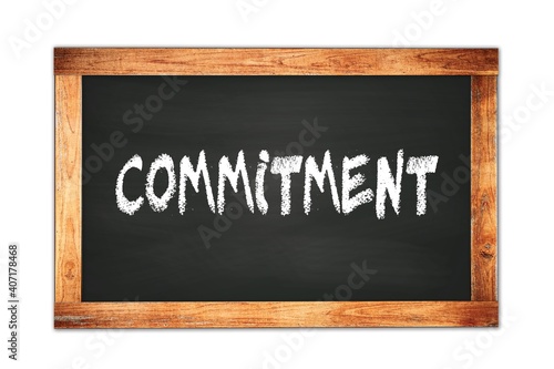 © outchill, Obraz premium COMMITMENT text written on wooden frame school blackboard.
