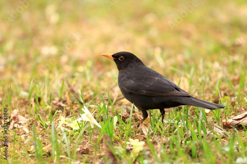 © Simun Ascic, Fototapeta premium Common blackbird on meadow in backyard