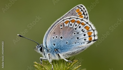 © Md, Obraz premium Common blue butterfly on Craspedia under the sunlight in a garden with a blurry 1