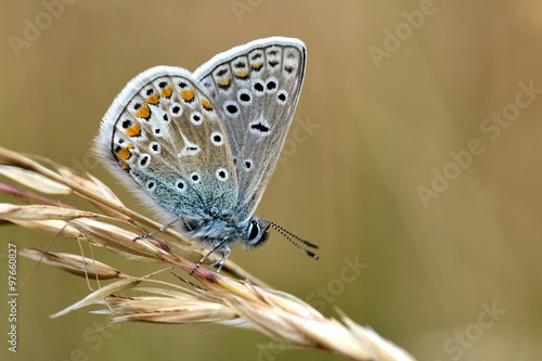 © iredding01, Obraz premium Common blue butterfly (Polyommatus icarus), at rest with underside visible