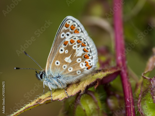 © Stephan Morris , Obraz premium Common Blue Butterfly. Side View Wings Closed.