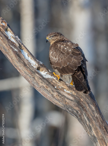 © Simonas, Obraz premium Common Buzzard in winter at a wet forest